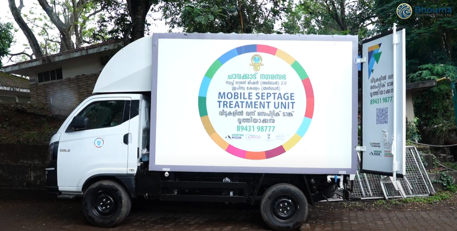 Kerala’s Mobile Sanitation Engine, developed by Bhouma Envirotech, is a state-of-the-art Mobile Septage Treatment Unit designed to bring rapid, decentralized sanitation to every corner of the state. Engineered for Kerala’s unique terrain and household septic tank patterns, this compact yet powerful system treats septage on-site, ensuring safe, compliant, and eco-friendly disposal without burdening treatment plants or waterbodies. With advanced filtration, sludge dewatering, and odor-control technology, Bhouma’s unit delivers clean effluent within minutes transforming urban sanitation, reducing public health risks, and supporting municipalities in achieving 100% scientific septage management across Kerala.